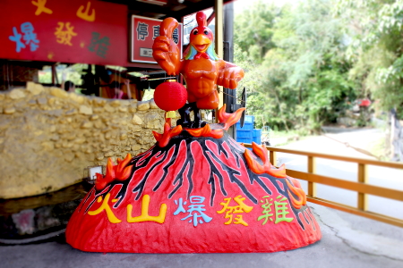 台北往宜兰的雪山隧道通车后,宜兰礁溪而形成一种观光新风景。火山爆发鸡名称由来,我们首先从火山爆发鸡说起,因为大家都知道礁溪有温泉,而温泉本身的基础为火山,因此我们取名为火山爆发鸡,吃起来外皮酥脆,肉质又富汤汁,就像一座火山一样,搭配我们独特研发的酱料,风味一绝!在台湾组曲交响声中,近上百桌宽敞的古早味餐厅,火山爆发鸡正热闹上菜中。
