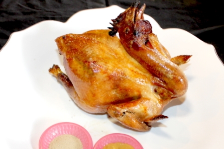 宜兰礁溪烤鸡一条街,皮酥肉嫩内附汤汁,就像一座火山,因此我们叫它【火山爆发鸡】。
